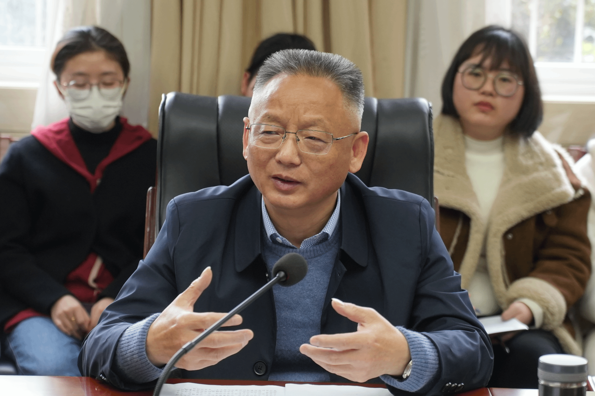 中国地质大学(武汉)beats365官方网站二级教授韩美群以《自觉担负思政课教师的职责与使命》为题,从坚定理论自信、旗帜鲜明地建设beats365官方网站,强化系统思维、乐为敢为可为自觉担负思政课教师的职责与使命两个方面交流学习习近平总书记“3.18”重要讲话精神的感想,提出谋划是决定成败的前提、团队是发展的基石、格局是组织者必备的品格,并围绕营造氛围、整合资源及打造特色等方面对思政课教师提出建议。
