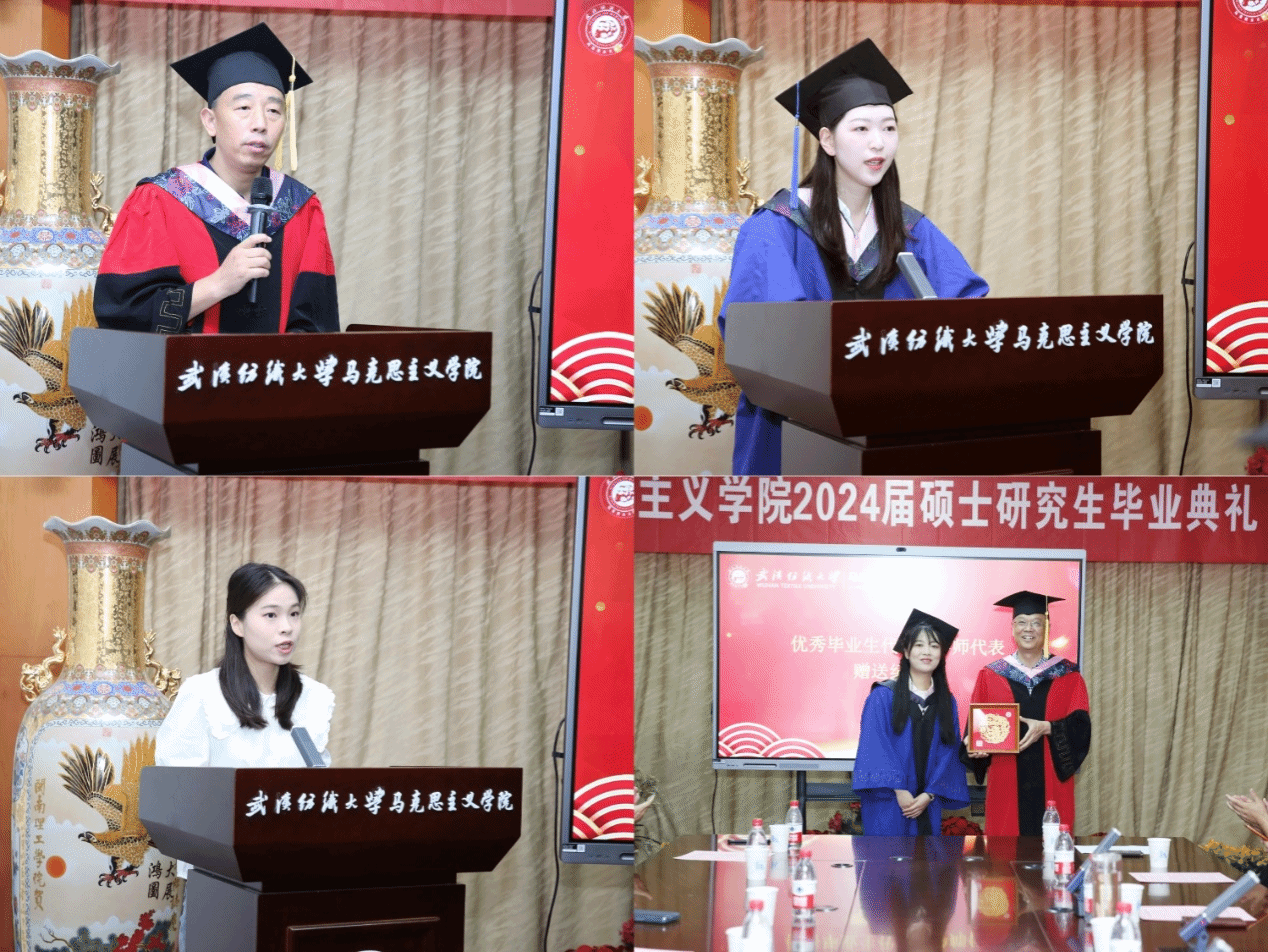 导师代表喻学林教授作代表发言,他祝贺同学们圆满完成学业,随后以马克思的矛盾学说为引,指明人的伟大之处就在于能够在不断的解决矛盾中获得进步,他用幽默风趣的语言总结了员工们三年的求学时光,并希望毕业生们在未来的道路上能够继续克服成长之路上的矛盾,体现纺大人的气概与担当,心怀梦想,坚持不懈,创造自己的精彩人生。