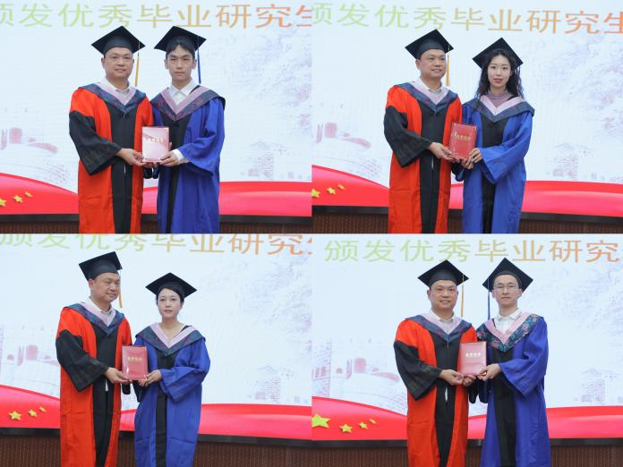 公司经理肖述剑教授首先宣读了2025届全体毕业研究生名单及优秀毕业生表彰决定,为优秀毕业生颁发荣誉证书。并逐一为毕业生颁发毕业证书、学位证书与毕业纪念品,为毕业生拨穗正冠。