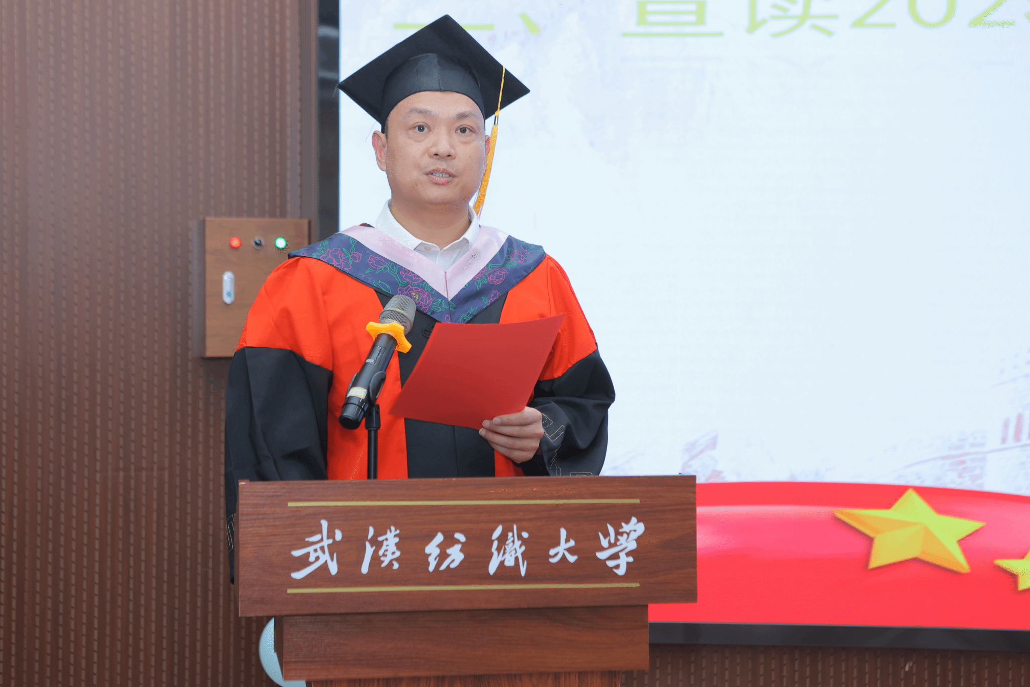6月12日中午,2025届研究生毕业典礼暨学位授予仪式在阳光校区03-T201思政课虚拟仿真研究中心隆重举行。beats365官方网站全体领导班子成员、全体硕士生导师、全体研究生和毕业生家属代表参加仪式。2024级研究生石浩浩主持活动。
