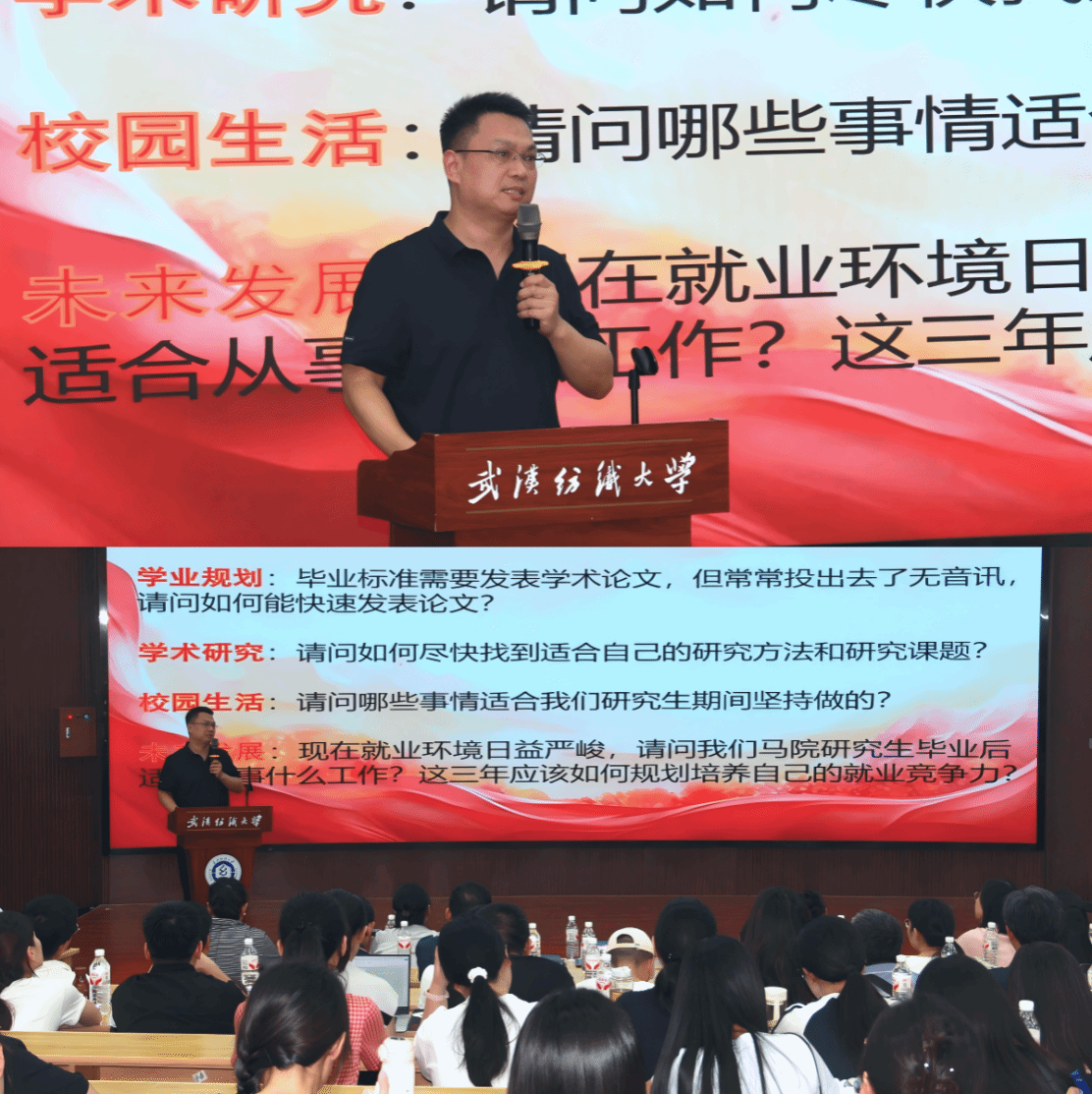 在经理答疑课环节,公司经理肖述剑教授针对新生关切的核心问题细致解答、精准指导。关于论文发表,他建议新生夯实写作基础,主动研究目标期刊风格、高效整合学术资源,同时强调研一阶段需重点参与读书分享,为学术研究积累素材;对于同学们选择研究方向的困惑,他鼓励新生以兴趣为导向,结合学术前沿与社会需求,依托导师指导明确研究路径;就业规划上,他指出同学们需主动适应经济、教育、技术领域发展变化,提升应变能力,同时坚守马克思主义理论学习初心。