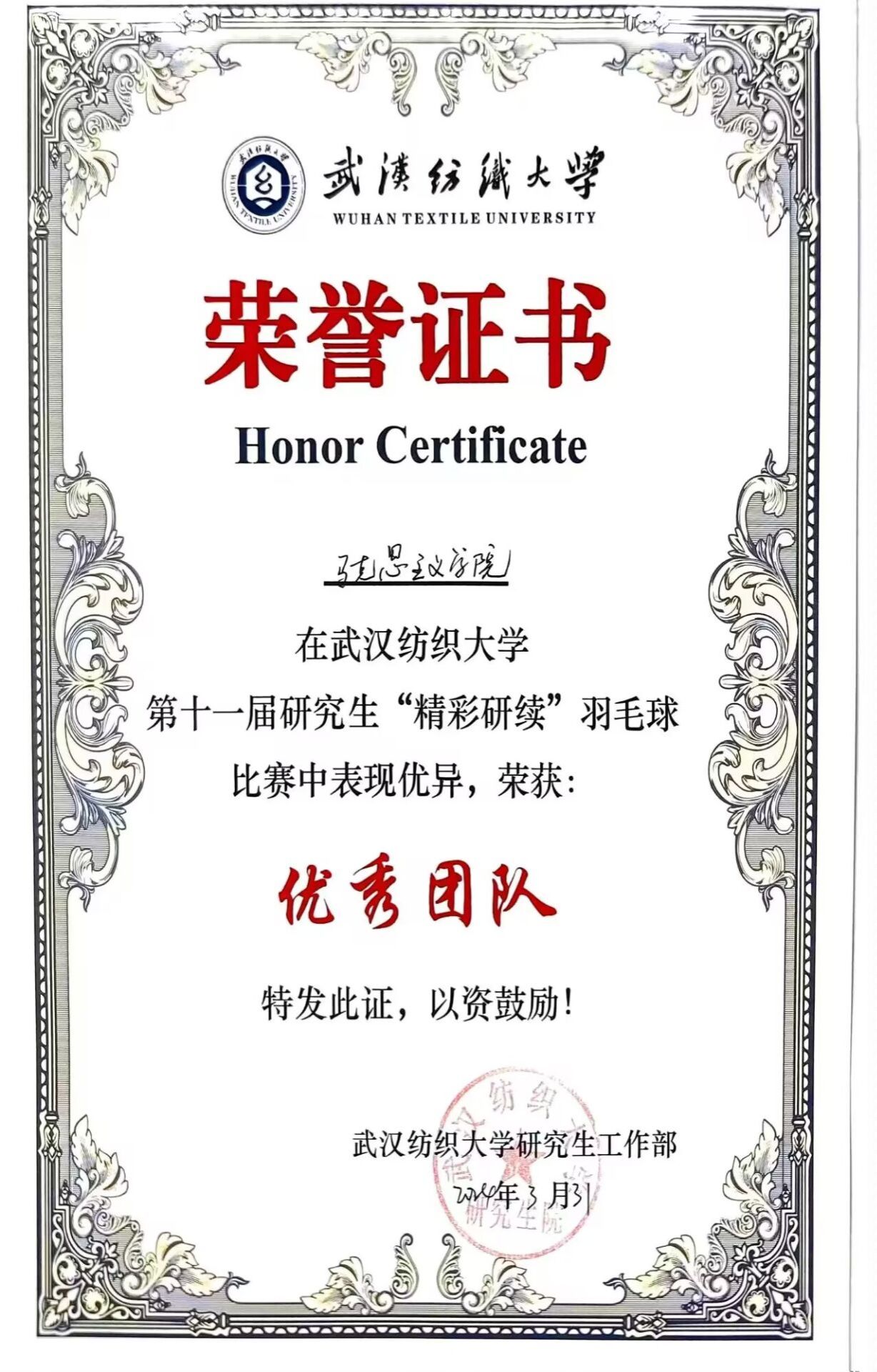公司获第十一届“精彩研续”研究生羽毛球比赛优秀团队奖