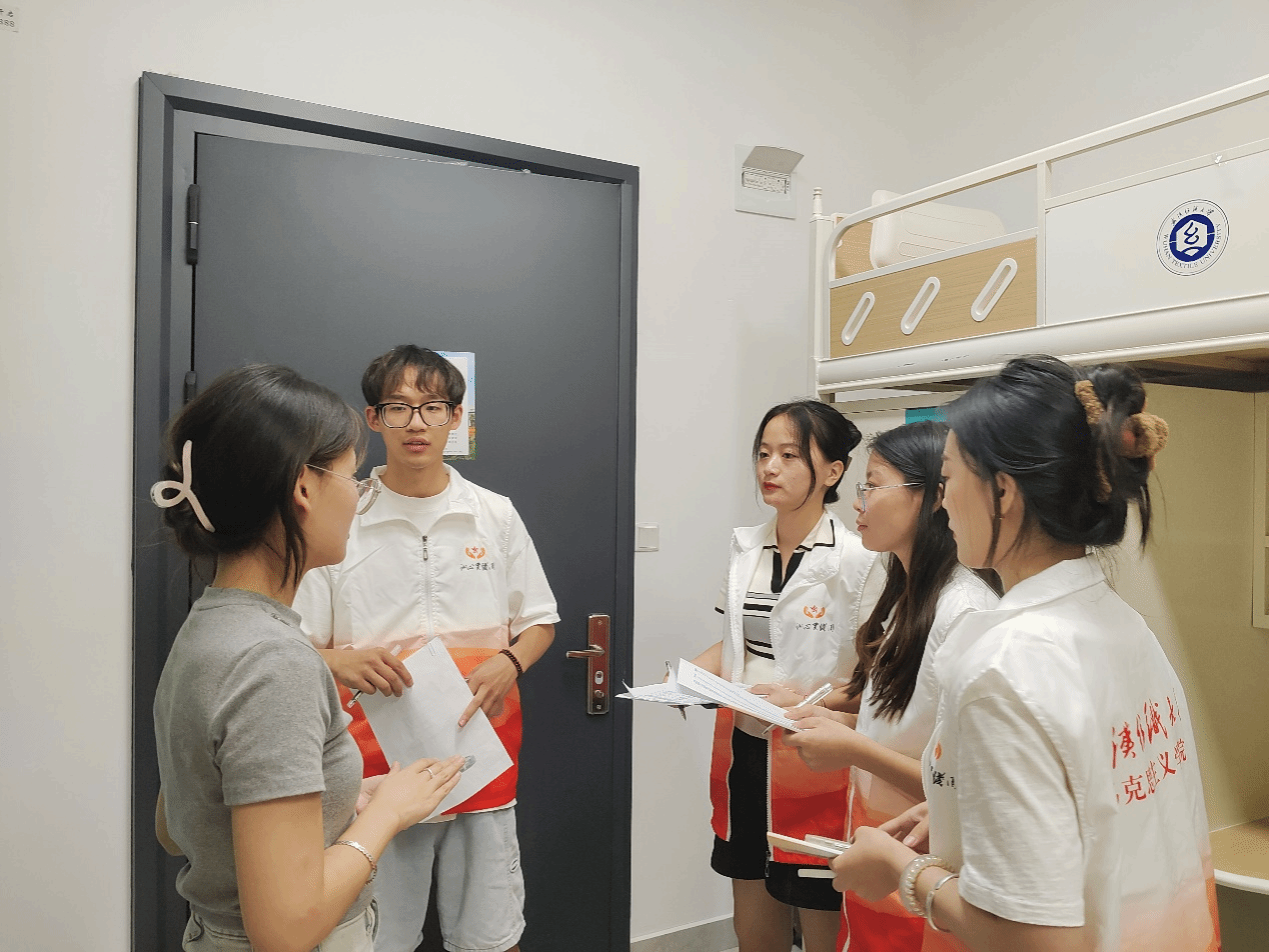 白天的迎新工作结束后,迎新志愿小组成员晚上走访了新生宿舍,询问新生是否有困难,耐心解答新生疑问,同时提醒新生积极遵守寝室公约,共同营造一个温馨、整洁、有序的住宿环境。