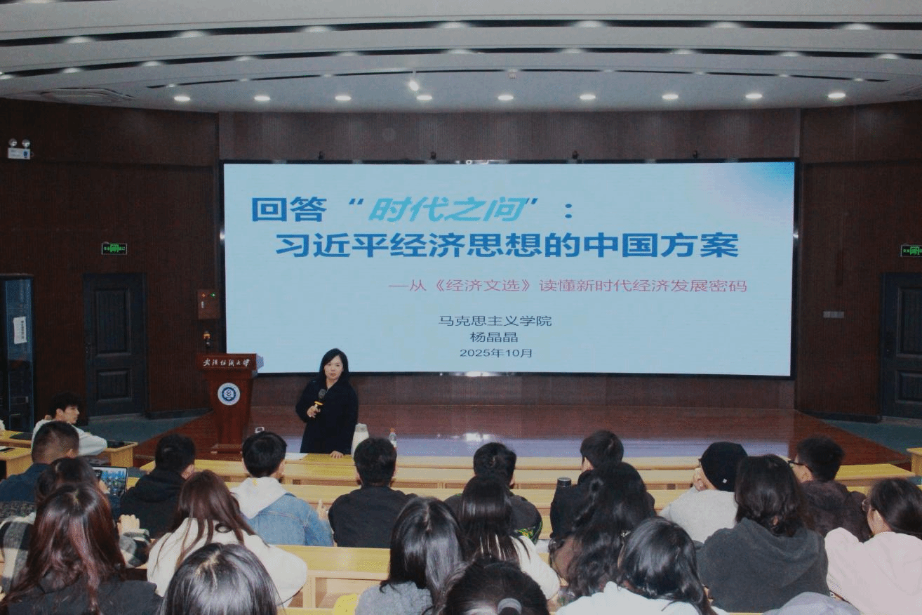 10月21日晚,2025年第9期研究生论坛在阳光校区03-T201思政课虚拟仿真研究中心举办。公司副教授杨晶晶以“《习近平经济文选》第一卷导读”为指引,围绕“时代之问与中国的回答”这一核心,深入分析中国经济发展理论与实践,探讨习近平经济思想对马克思主义政治经济学的创新与发展。公司全体研究生参会。