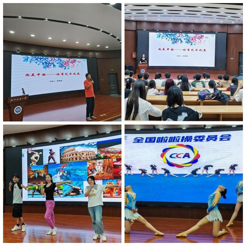 陈茜茜通过动态、静态和动静结合的体育艺术作品向同学们展示了体育艺术之美,深入剖析了体育艺术的意蕴之美。陈茜茜为同学们展示了多次获得全国啦啦操比赛冠军的啦啦操表演,征服了在场的所有同学们,大家报以热烈的掌声。