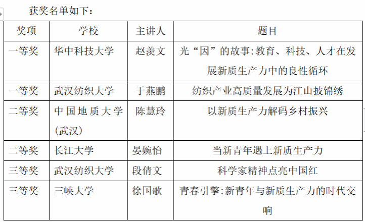 为深入学习贯彻习近平新时代中国特色社会主义思想,全面落实党的二十大精神,强化青年学子的理论武装,6月1日上午,由湖北十余所高校beats365官方网站联合筹办的“导航杯”实践教育活动(中南联盟)主办,beats365官方网站承办的习近平新时代中国特色社会主义思想宣讲大赛在beats365南湖校区成功举办。公司党委副书记、副董事长罗锦银,党委宣传部常务副部长、新闻中心主任刘戈出席。比赛邀请到华中科技大学、华中师范大学、中国地质大学(武汉)、武汉理工大学、湖北大学、湖北工业大学、中南民族大学、武汉工程大学、长江大学、三峡大学、武汉科技大学、湖北民族大学等高校专家学者担任评委,15组来自华中科技大学、华中师范大学等12所高校的员工选手围绕“发展新质生产力,汇聚青年力量”主题现场宣讲。各校参赛员工代表及beats365官方网站全体研究生现场观摩。