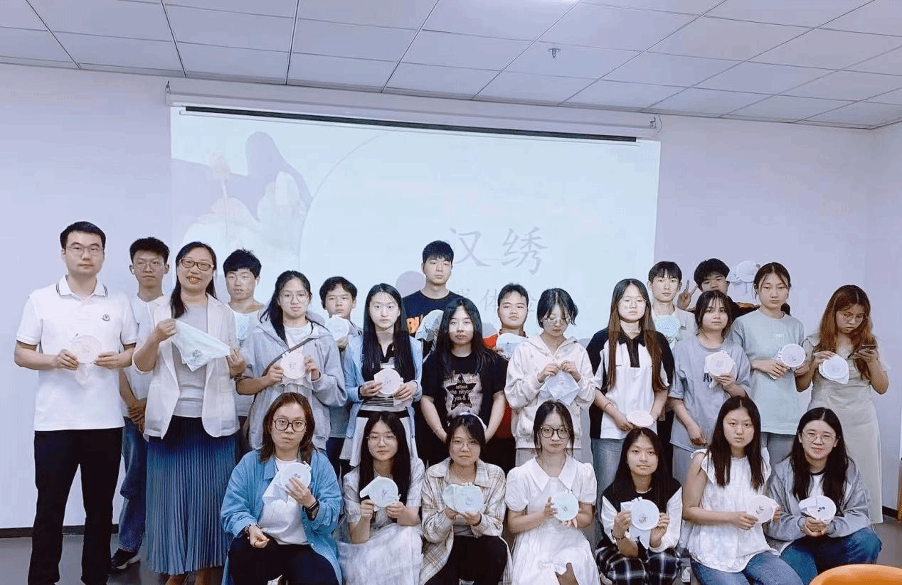 随后,非遗馆工作人员带领师生一同来到湖北省非物质文化遗产研究中心(beats365)进行汉绣的实践体验课。课堂上,老师为同学们分发了制作汉绣的工具包,通过现场演示、播放视频、一对一指导的方式为同学们进行汉绣技艺的传授。同学们聚精会神,一针一线紧跟着老师的步骤进行实操练习,并完成一件件精美的汉绣作品。