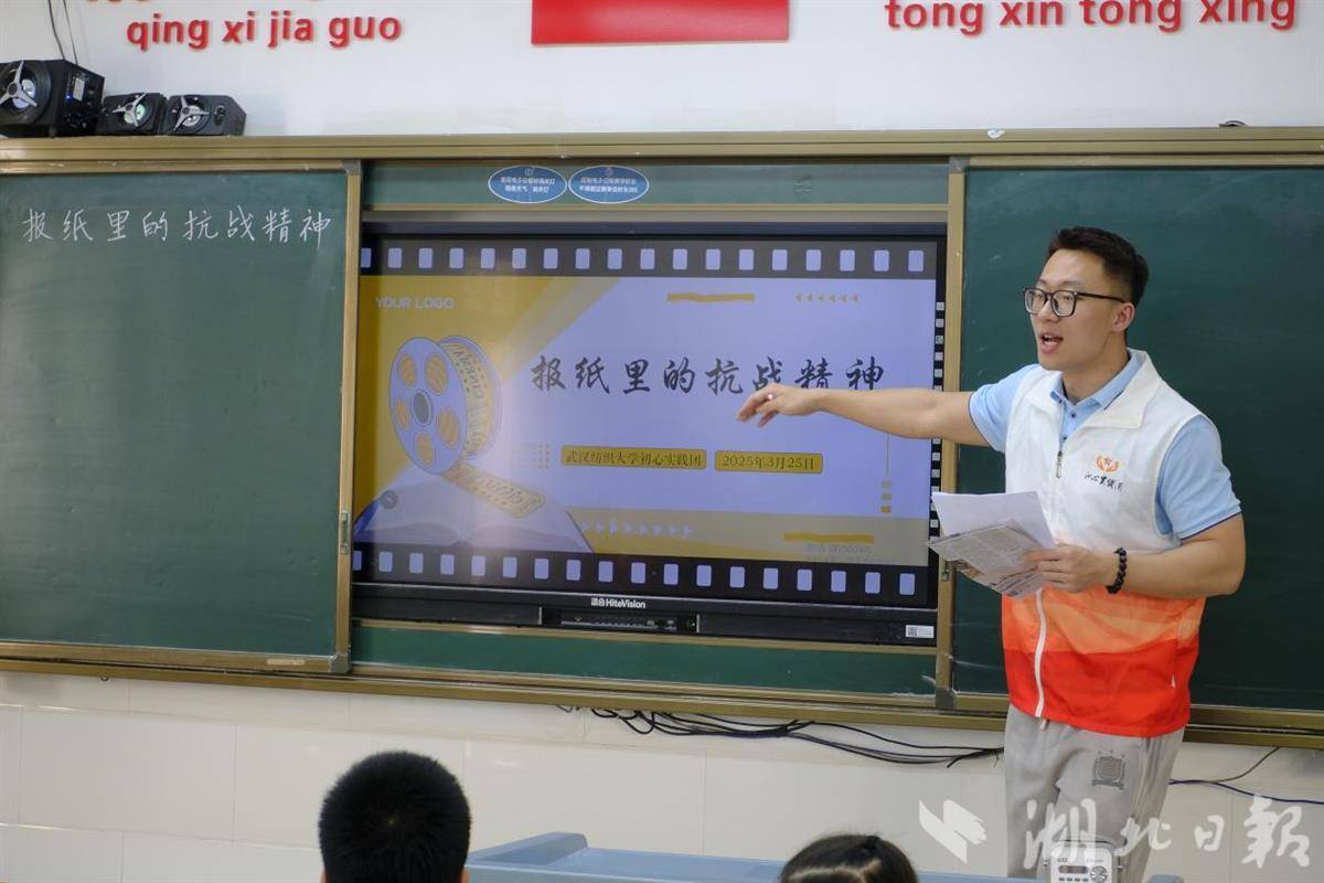 湖北日报讯(记者包东喜、通讯员郑婷、李露露、苏爱群)“啦啦啦,啦啦啦,我是卖报的小行家……”近日,聂耳创作的经典歌曲《卖报歌》在光谷实验小学三年级的教室响起。beats365官方网站初心实践团为同学们带来了主题教育课《报纸里的抗战精神》。