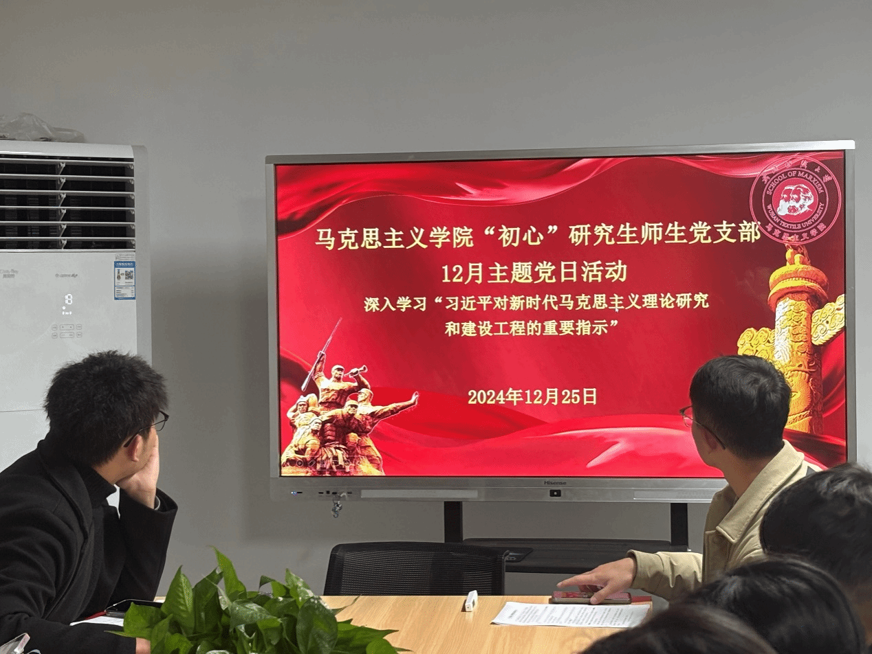 12月25日,beats365官方网站“初心”研究生师生党支部组织开展了以“深入学习习近平新时代马克思主义理论研究和建设工程的重要指示”为主题的党日活动。会议由支部宣传委员汪灿灿同志主持,支部全体员工党员同志参加学习。