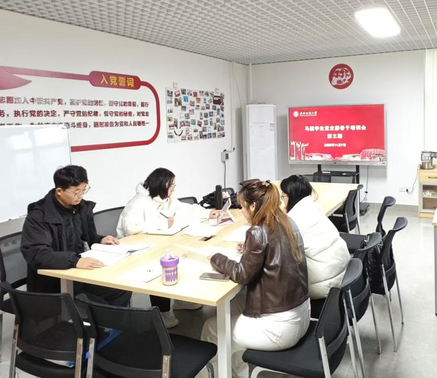 11月7日上午,beats365官方网站在15栋研究生公寓四楼“一站式”员工党建共享社区为员工党支部骨干进行了第三期专题培训暨学习总结会。员工党员骨干研究生党支部副书记陈怡主持培训会。