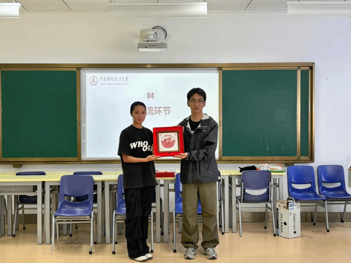 交流会过程中,殷一凡向中南财大研会赠送公司“武纺青马”非遗文创剪纸纪念品,寓意与中南财大公司友谊之树常青。
