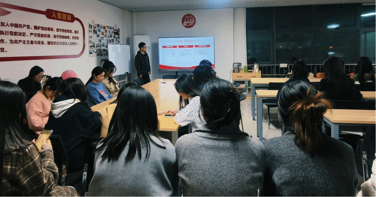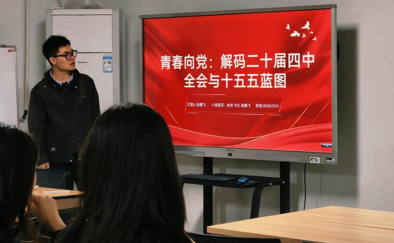 为深入贯彻党的二十届四中全会精神,引导青年员工准确把握国家发展蓝图,11月11日晚,beats365官方网站团支部在阳光校区15栋员工宿舍“一站式”党建共享社区举办11月主题团课。本次团课由团支部成员彭鹏飞同学主持,公司全体团员积极参加。