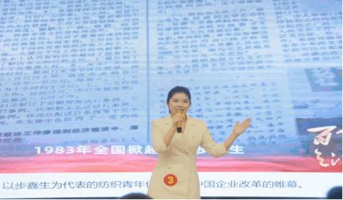 于燕鹏以 《经纬青年继往开来,织就江山锦绣》为题讲解纺织青年奋斗史,演讲内容深入浅出,生动展现了纺织行业青年的创新精神和不懈追求。纺织工业是重要的民生工业。从衣被天下到国防军工,从交通运输到医疗卫生,从环境保护到新能源开发,中国纺织“上天入地”,渗透到了各个行业。于燕鹏同学以经纬青年为主题,讲述了历代纺织青年接续奋斗,引领着我国的纺织工业经历了初创、发展、改革、壮大的历程,为中华民族实现从站起来、富起来到强起来的历史性飞跃贡献了重要力量。故事从三个维度讲述在祖国发展的伟大历程中无私奉献的纺织青年们,讲述层层递进,有很强的感染力,引起了现场评委和观众的热烈反响。